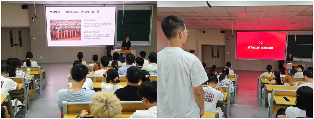 在“迷彩青春与家国担当”环节,通过复现军训场景,罗书记阐释纪律素养与强国建设的深层关联,引导学子树立个人成长与国家战略的共振意识并系统梳理红色育人脉络:从“血脉山河”板块对民族精神的解码,到“淬火成钢”单元再现革命战争年代的信仰锻造;从“复兴之路”展示百年奋斗史诗,到“时代之问”剖析当代青年的责任坐标。结合当前国家发展的宏伟蓝图与战略需求,主讲人向同学们发出了时代的召唤并提出了具体要求。
